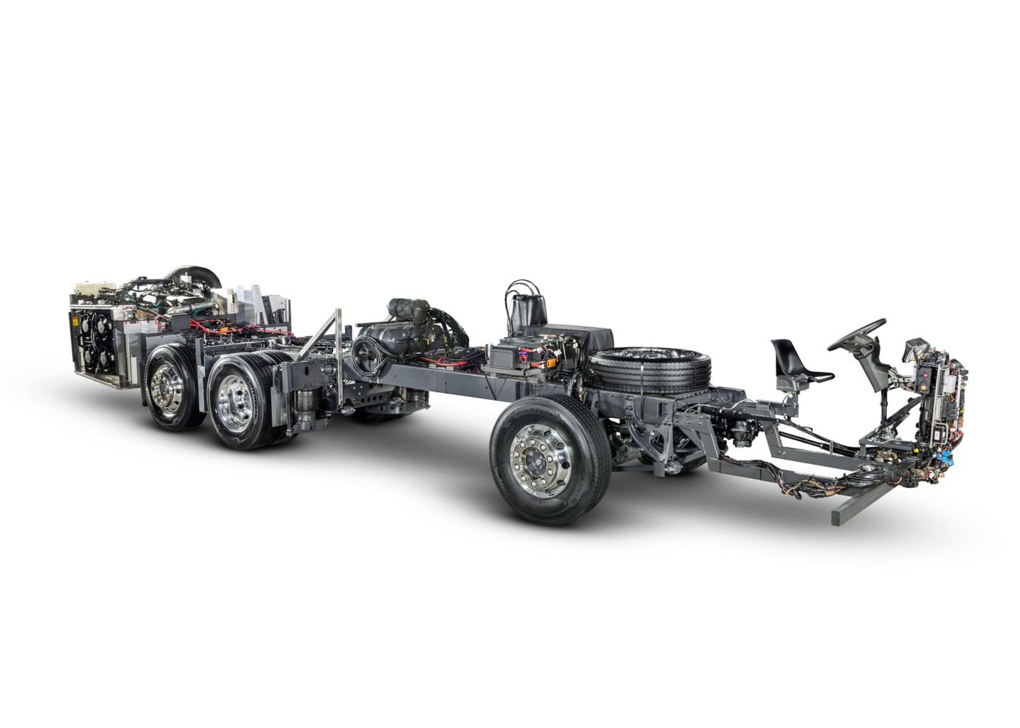 Os novos chassis também têm alternadores eletrônicos. Conectados entre si, eles têm vida útil maior e melhor eficiência de carregamento de bateria. Outra mudança ocorreu na arquitetura eletrônica, chamada Multiplex 3. Ela é totalmente nova, garantindo maior velocidade de dados e ainda maior eficiência no encarroçamento dos chassis.