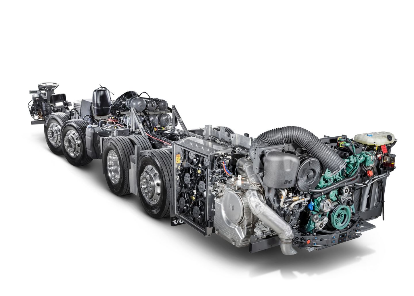 O propulsor tem a tecnologia common rail, que consegue maior pressão de injeção de combustível, fazendo com que a queima seja perfeita, gerando maior eficiência energética. Os chassis também são dotados da Aceleração Inteligente Volvo, um sistema que entrega torque na medida exata para o melhor desempenho e máxima economia. A transmissão I-Shift de 7ª geração permite trocas de marcha ainda mais rápidas e suaves.